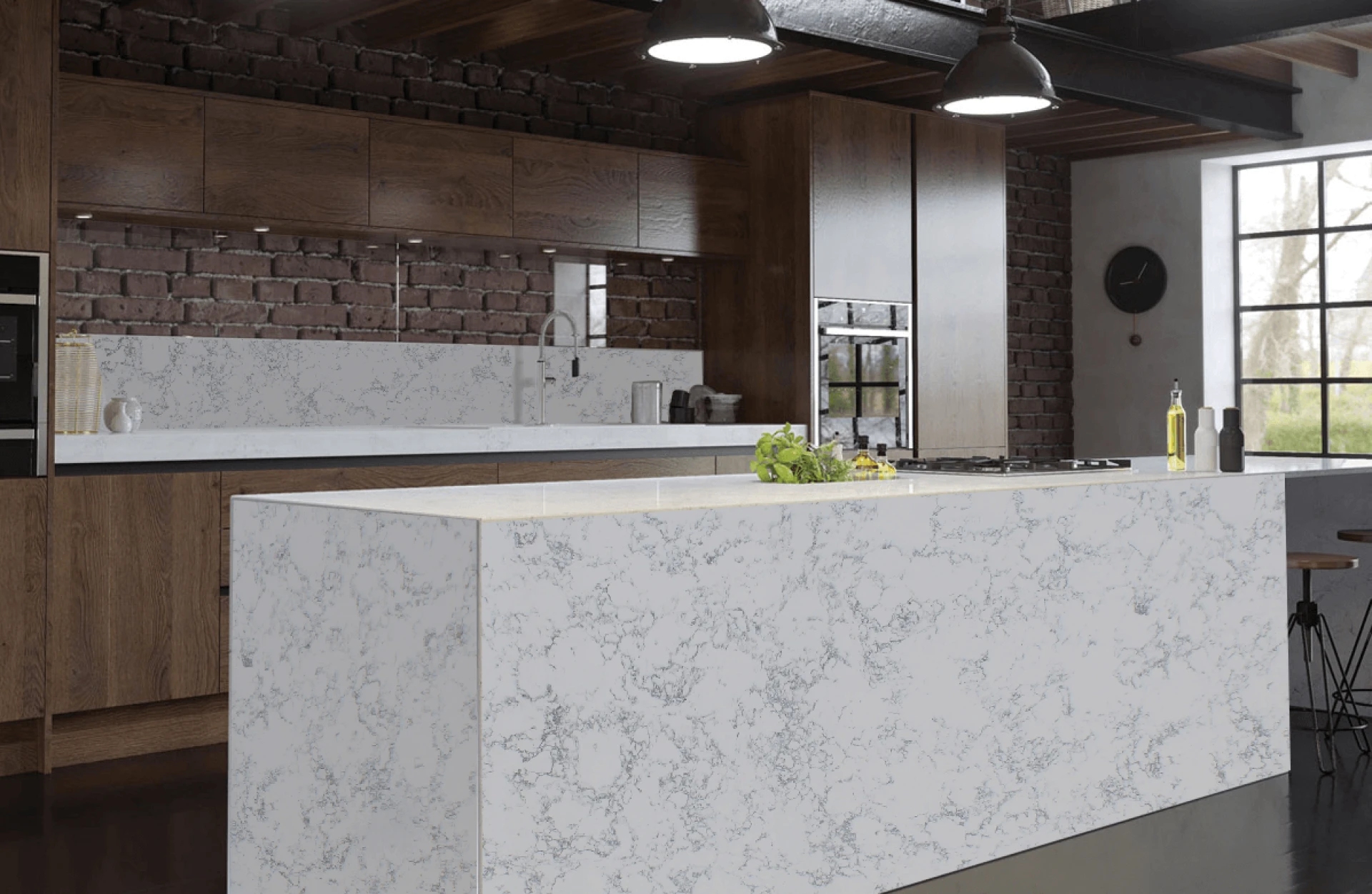Arabescato has a subtle and luxurious look, inspired by the natural marble of Calacatta, the popular Italian stone. On a white background, established neutral grey streaks are combined with minor movement. White Arabascato Quartz combines an affordable luxury look with long-lasting longevity.