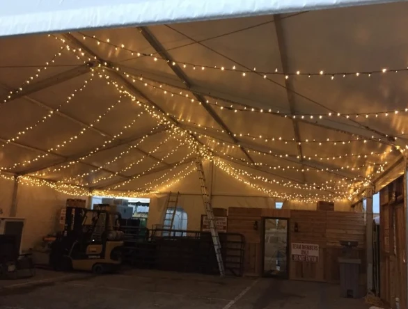 · String/Bistro Lights: Romantic, festive, flexible. Hanging overhead between trees, across patios or over dance floors — they add sparkle without shouting too loud. Natty touch for outdoor gatherings. Holy Christmas Lights offers bistro lights installation in outdoor settings across neighborhoods like The Heights, Memorial, etc.