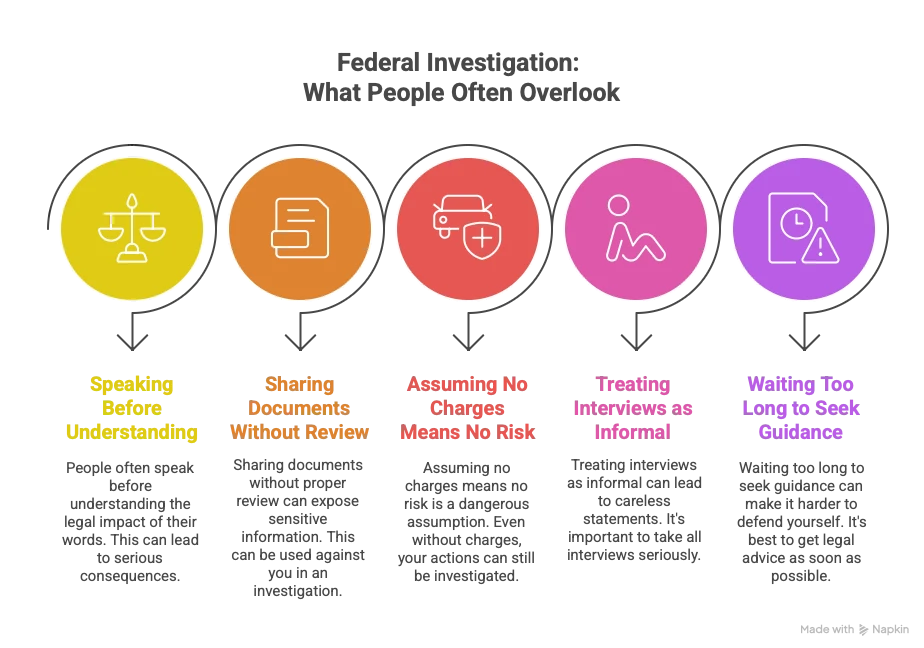 Another common mistake is assuming that no immediate charges mean no serious risk. Federal investigations often move slowly and quietly.