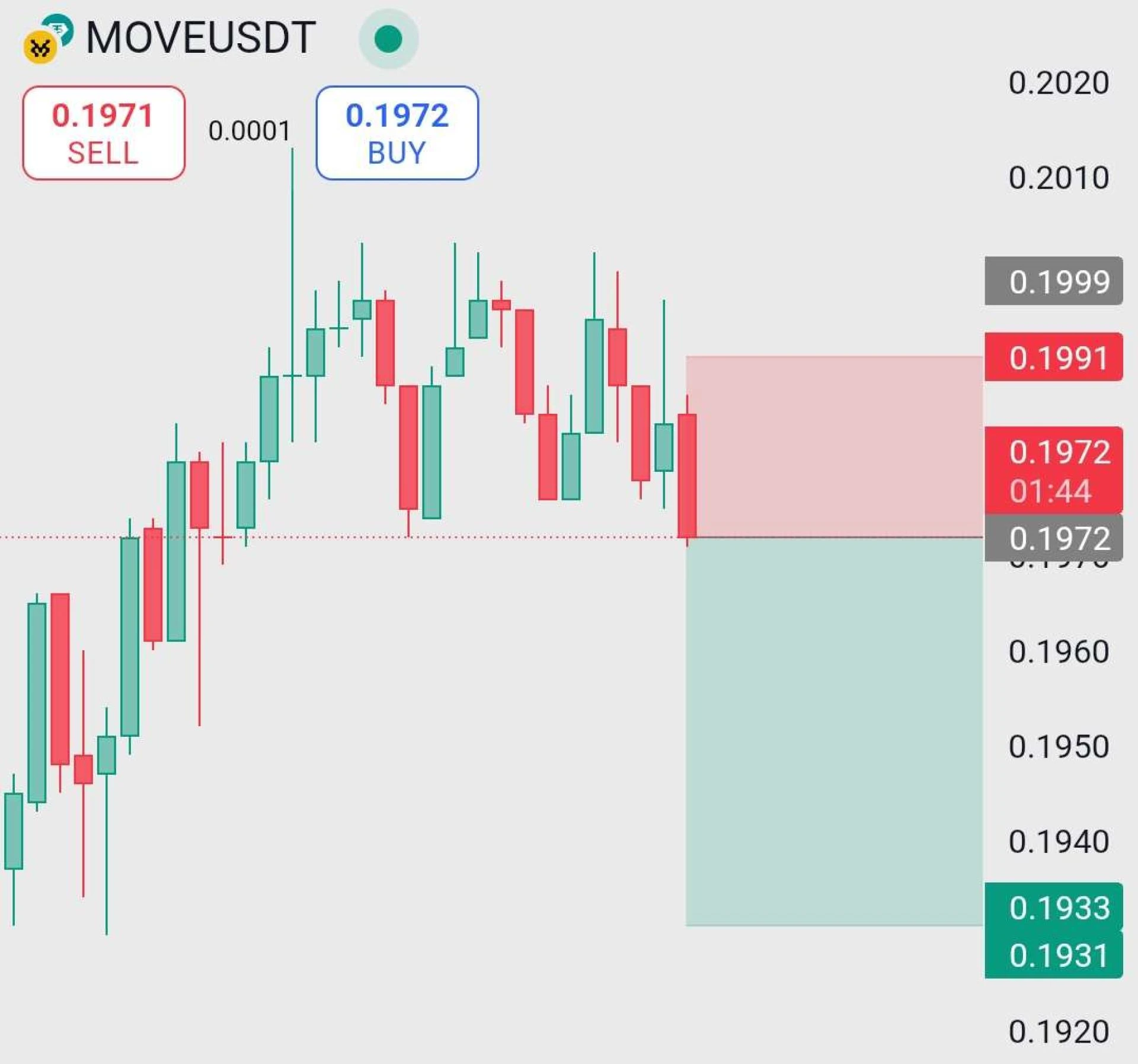 MOVE slipping below $0.1970, confirming a short-term bearish trend.