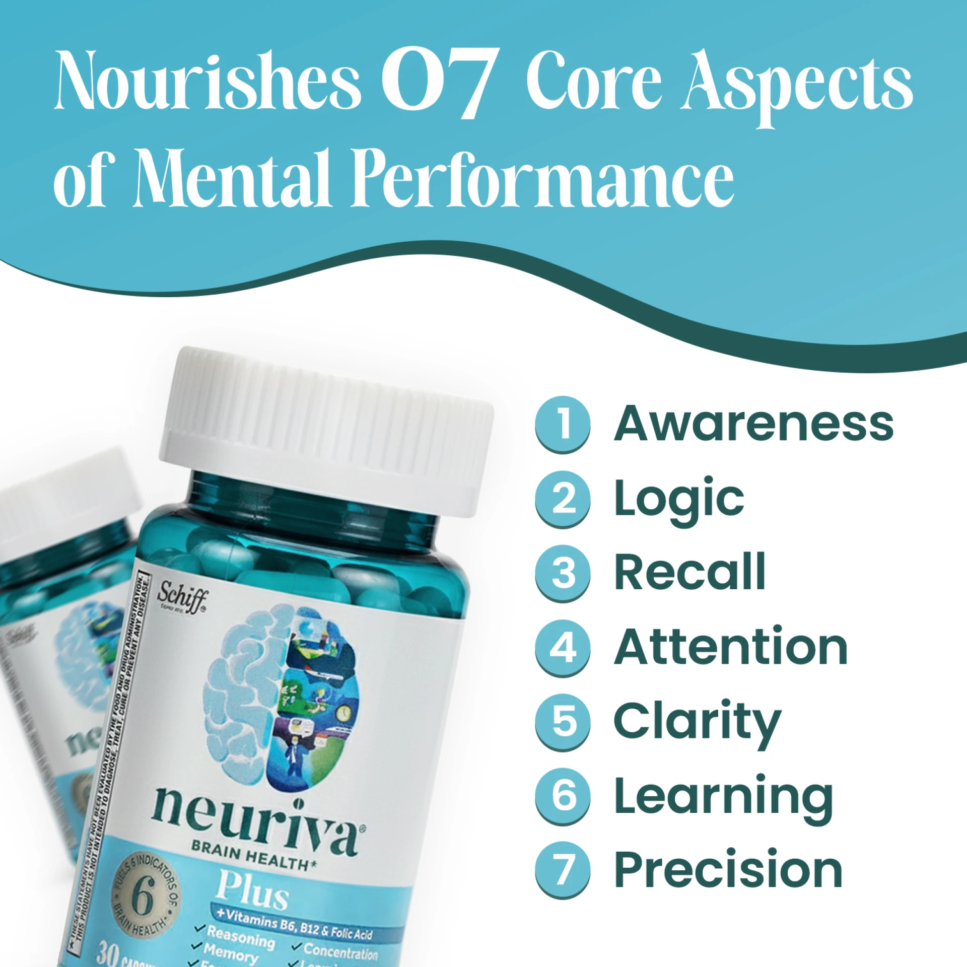 Neuriva Brain Performance Plus is a dietary supplement designed to support five areas of cognitive function: