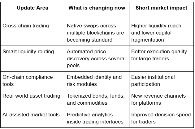 These updates clearly indicate that decentralized exchanges are evolving into full-scale financial infrastructure, not just crypto marketplaces.
