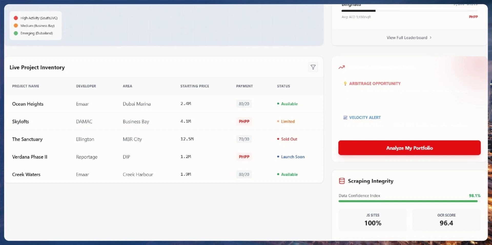 - Price Discrepancy Alerts: The system flagged instances where secondary market "assignments" (resales of off-plan units) were priced lower than the developer's final tranche, providing a lucrative "arbitrage" opportunity for the fund.