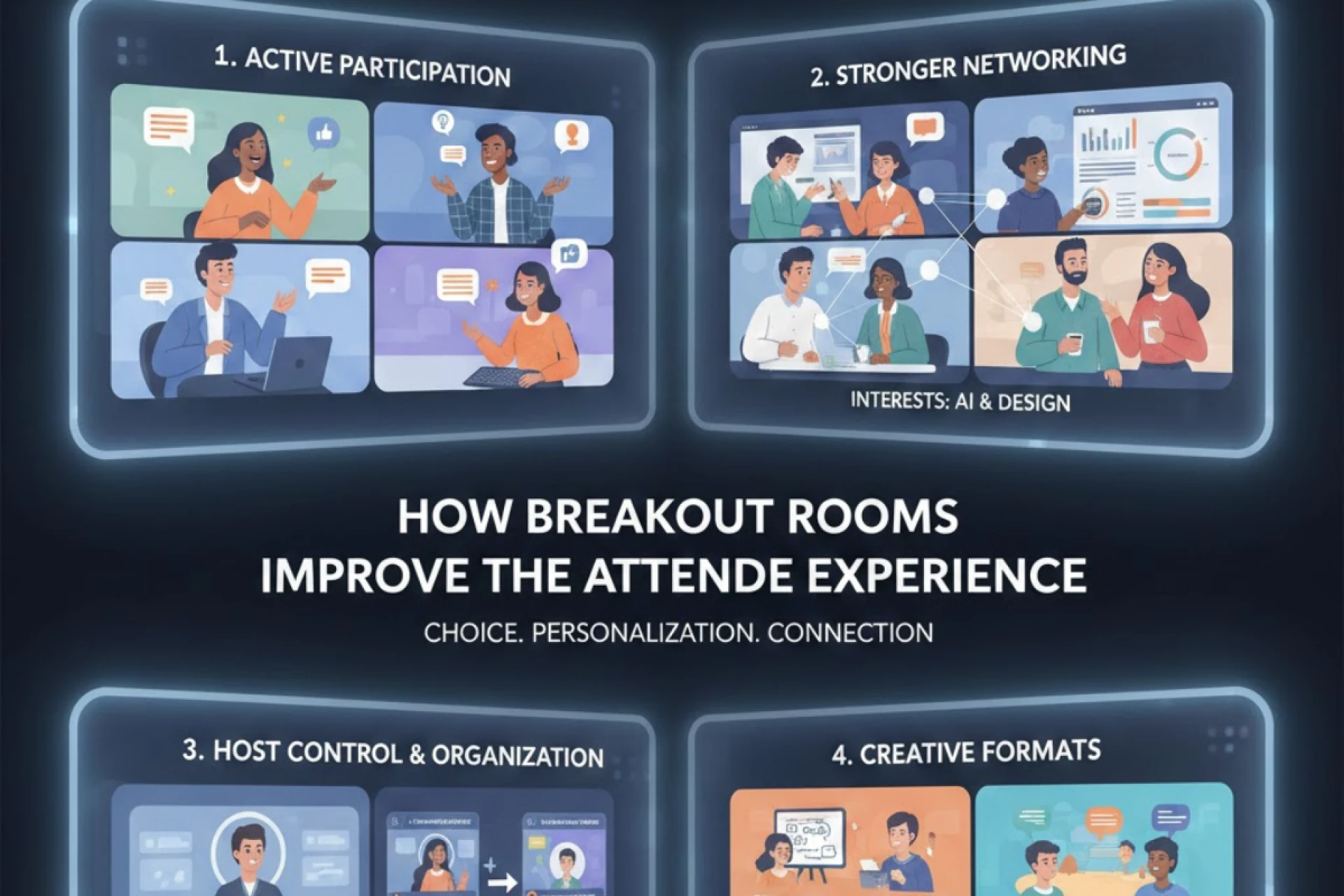 Breakout rooms have become a core feature for virtual and hybrid events because they help attendees feel involved rather than passive. Instead of listening for hours, participants can speak, exchange ideas, ask questions, and collaborate with peers.