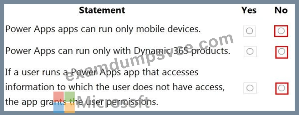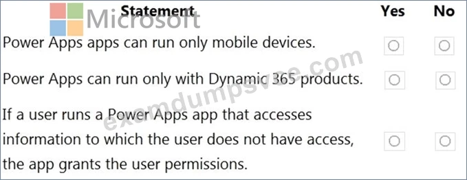 For each of the following statements, select Yes if the statement Is true. Otherwise, select No.
