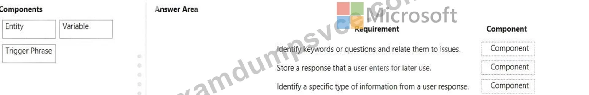 Which components should you use? To answer, drag the appropriate components to the correct requirements.