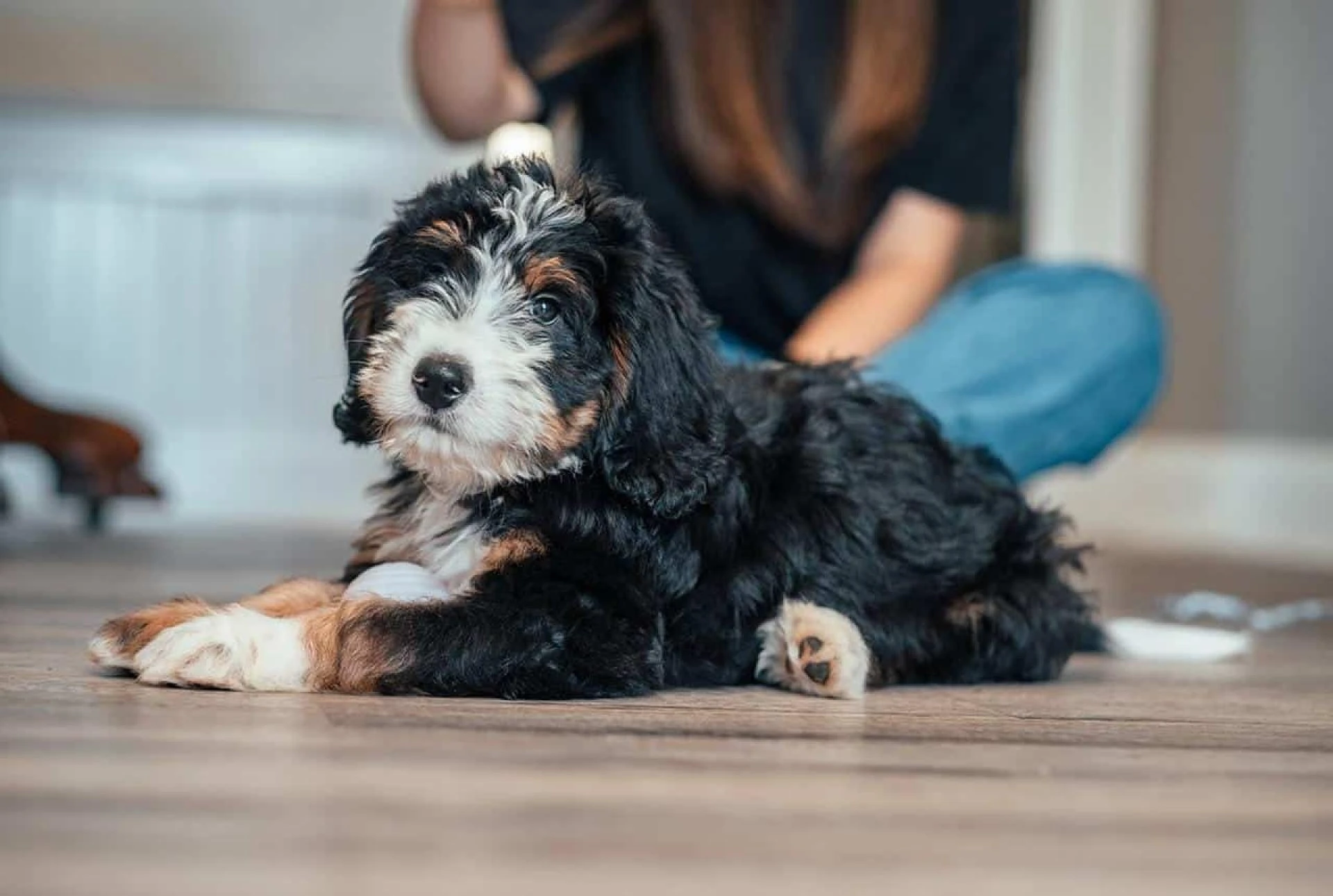Strapping your Doodle into a seat belt harness or securing them inside a crate stops distractions for the driver and helps avoid puppy-sized disasters.