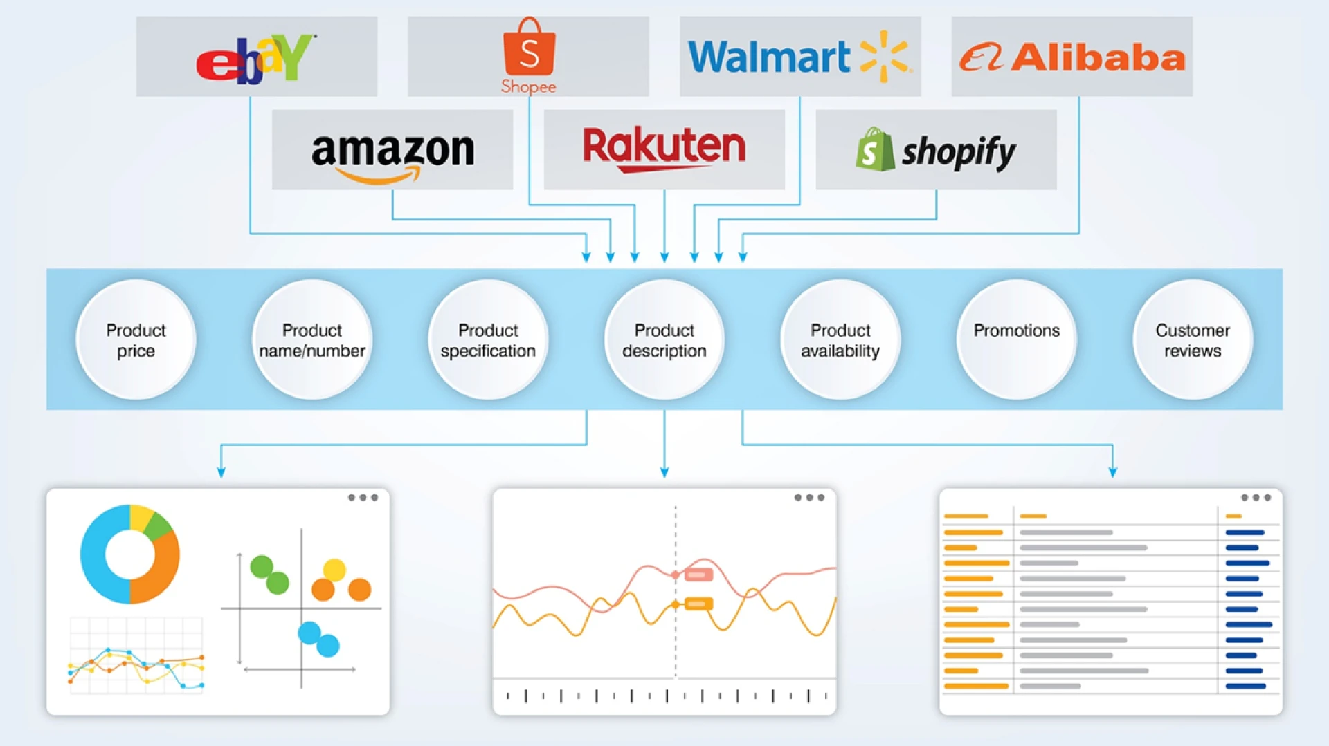 Product data scraping is the automated gathering of product data (e.g., specifications, prices, images, etc.) from competitors' websites, marketplaces and online catalogs. It helps B2B and e-commerce companies in doing competitive intelligence analysis in their sectors.