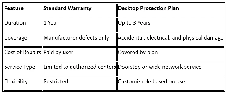 - Cost Efficiency: Repairing a desktop without coverage can cost more than the plan itself. With a protection plan, you pay a small upfront amount instead of thousands during breakdowns.