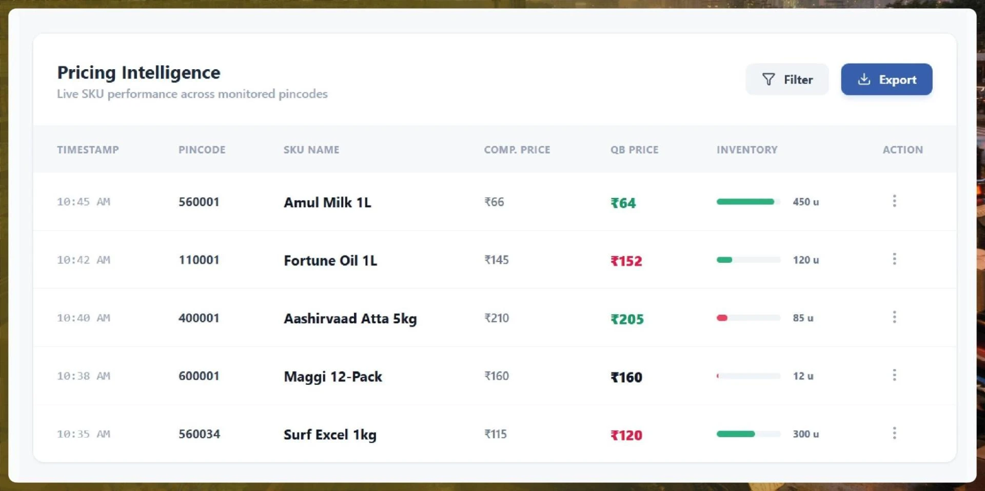 - Hyperlocal Competition: Tracking competitor offerings and pricing at a granular, pin-code level.