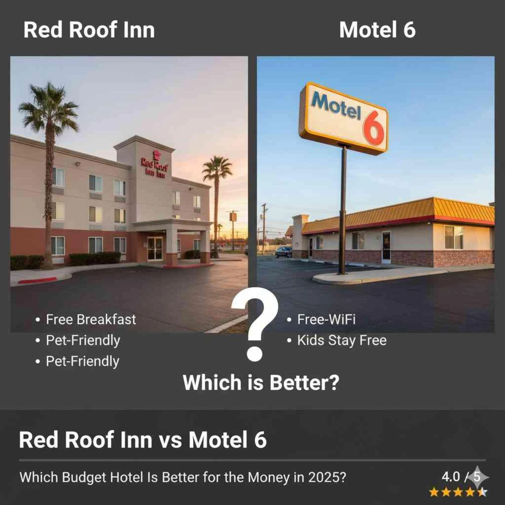 ✔ Winner: Motel 6 for base price, Red Roof Inn for discounts