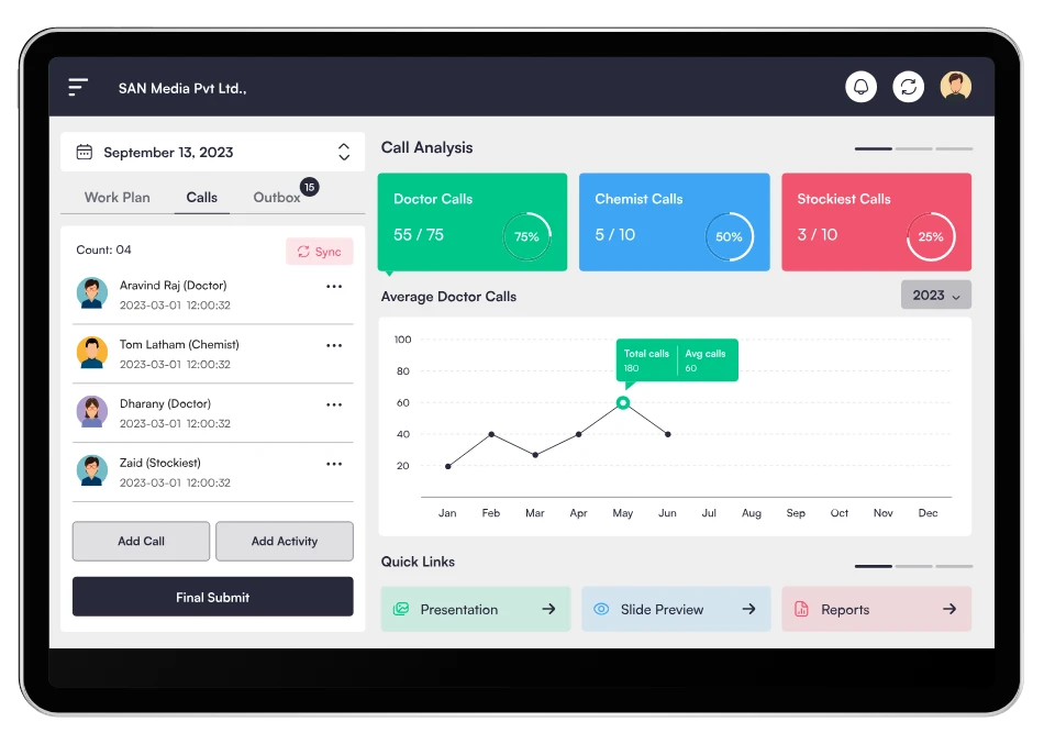 With its dynamic interface and easy-to-use features, SANeForce eDetailing software ensures seamless content storage, updates, and distribution. Whether you are managing content or interacting with HCPs, everything is streamlined and accessible in one place. This software is designed to meet the needs of modern pharma marketing, offering both in-person and remote engagement capabilities to drive better results.