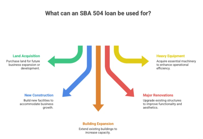 Through the program, eligible borrowers can use SBA 504 loans for: