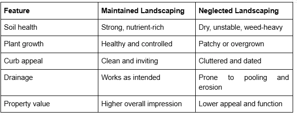 Comparison Table: Fresh Landscaping vs. Neglected Landscaping