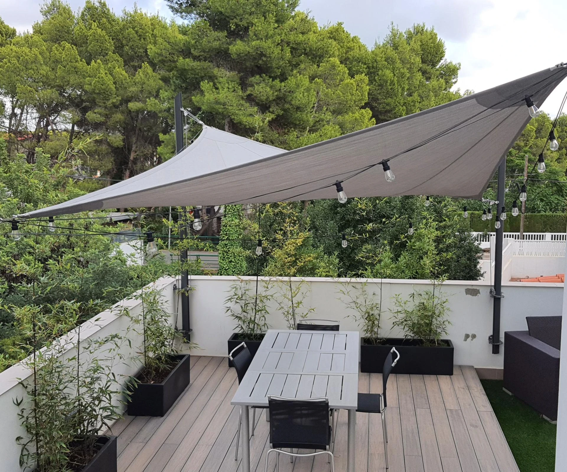 Sun and rain protection is essential for a balcony that’s usable year-round.
