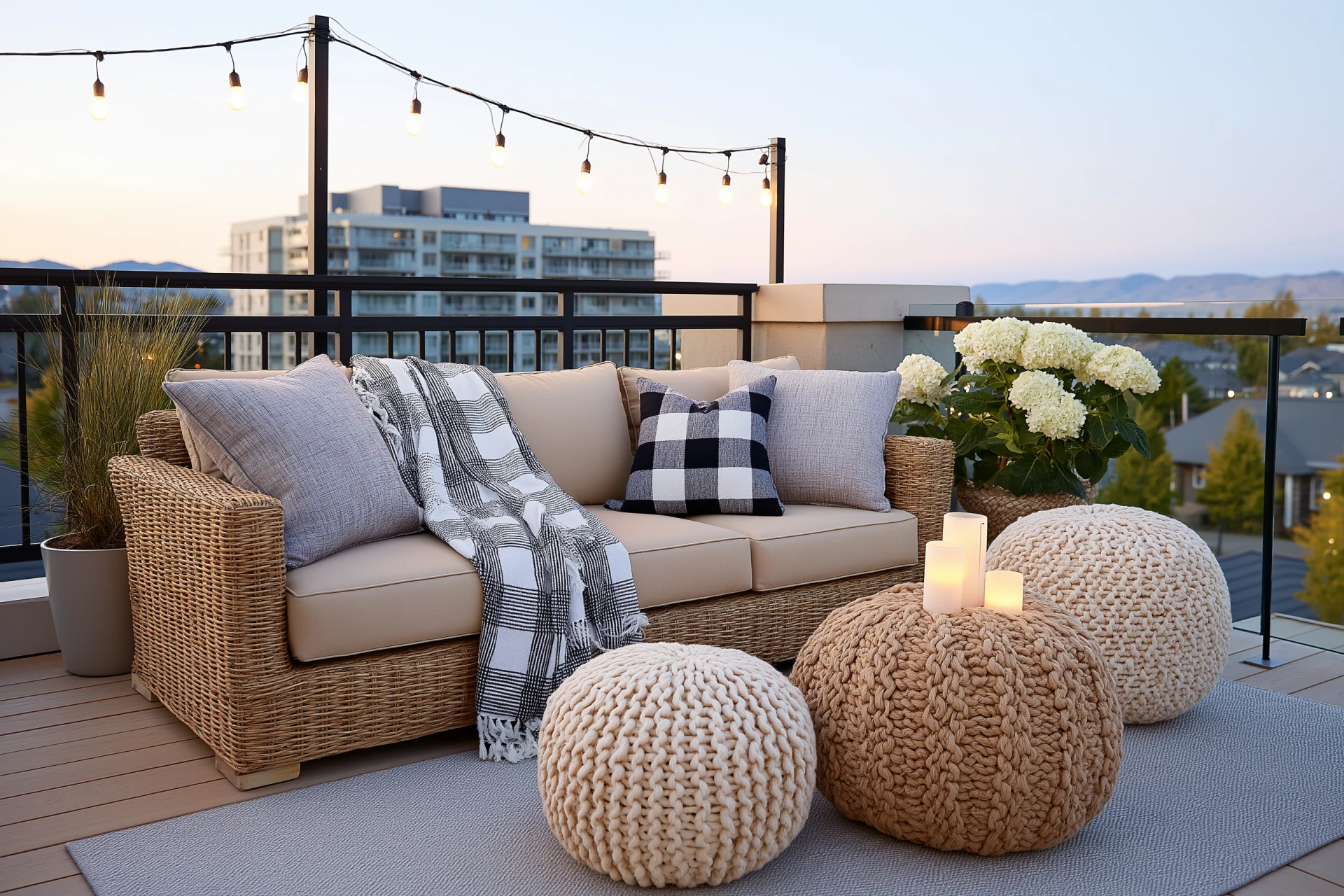 Lighting transforms your balcony from a daytime retreat to a cozy evening lounge. Opt for weather-resistant options: