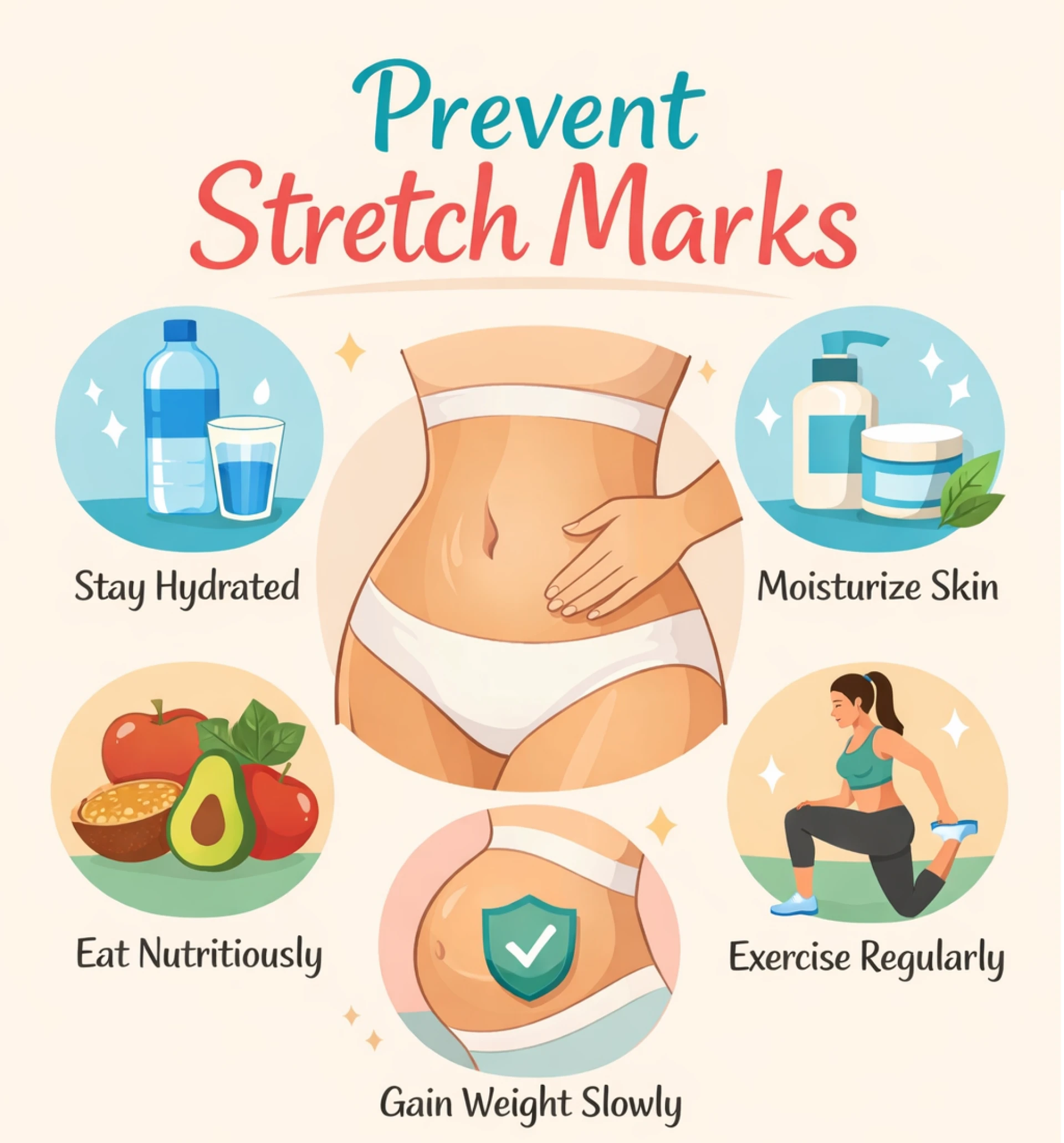 Well, it is entirely impossible to prevent stretch marks completely. However, there are ways to minimize the risk of developing stretch marks: