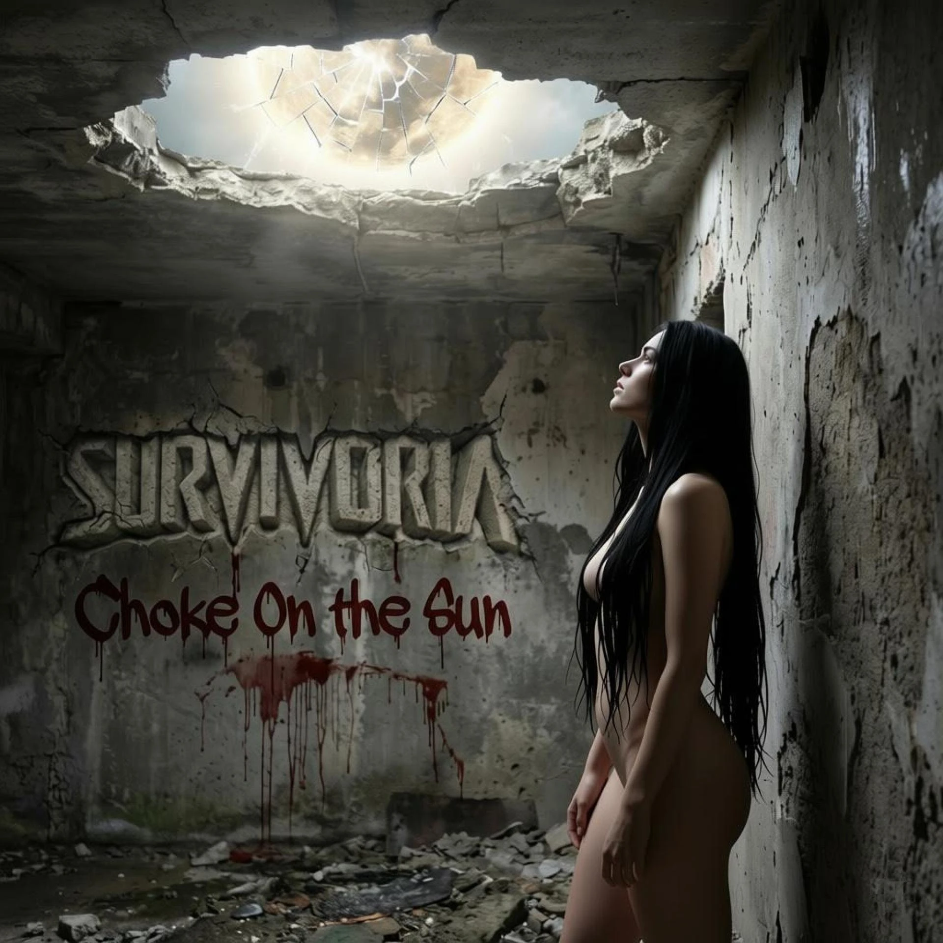 "Choke On the Sun" is Survivoria turning guitars into infrastructure - low-tuned, abrasive riffs that grind forward like a rusted motor under load. The groove is tight and mechanical, with industrial noise and cold electronic grit circling the mix instead of smoothing it out.