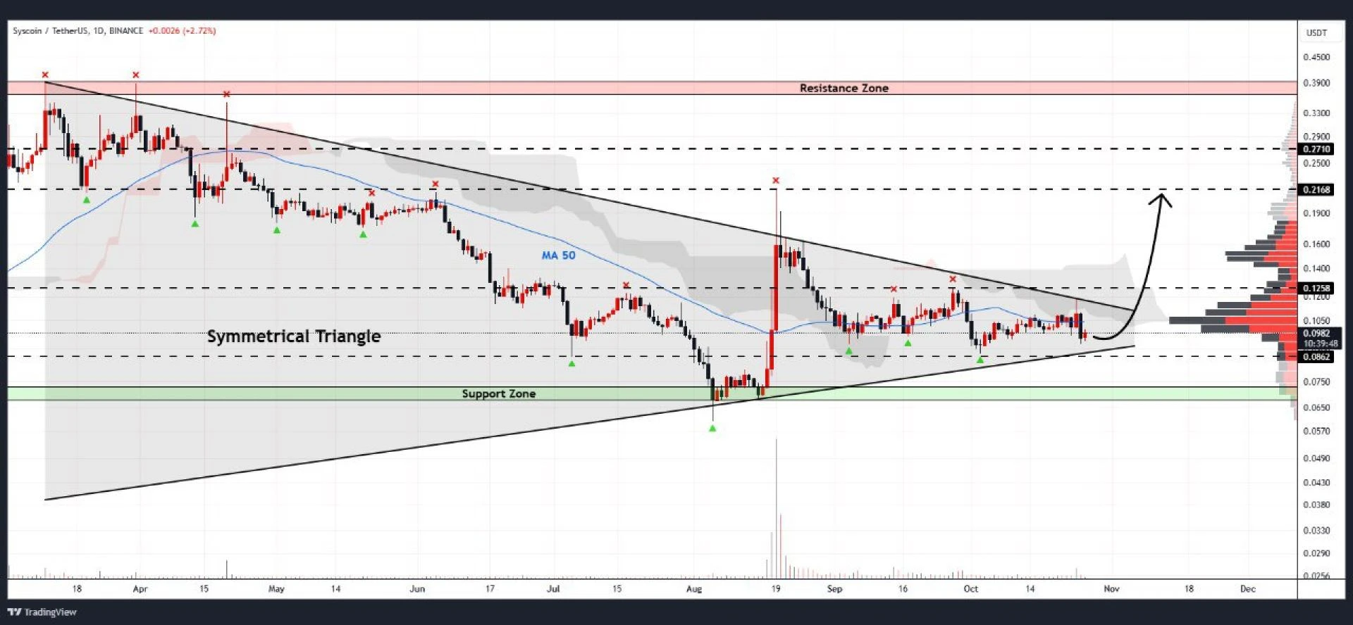 Top analyst Whales Cryptozz notes that SYS is nearing the apex of a triangle pattern on the daily chart.