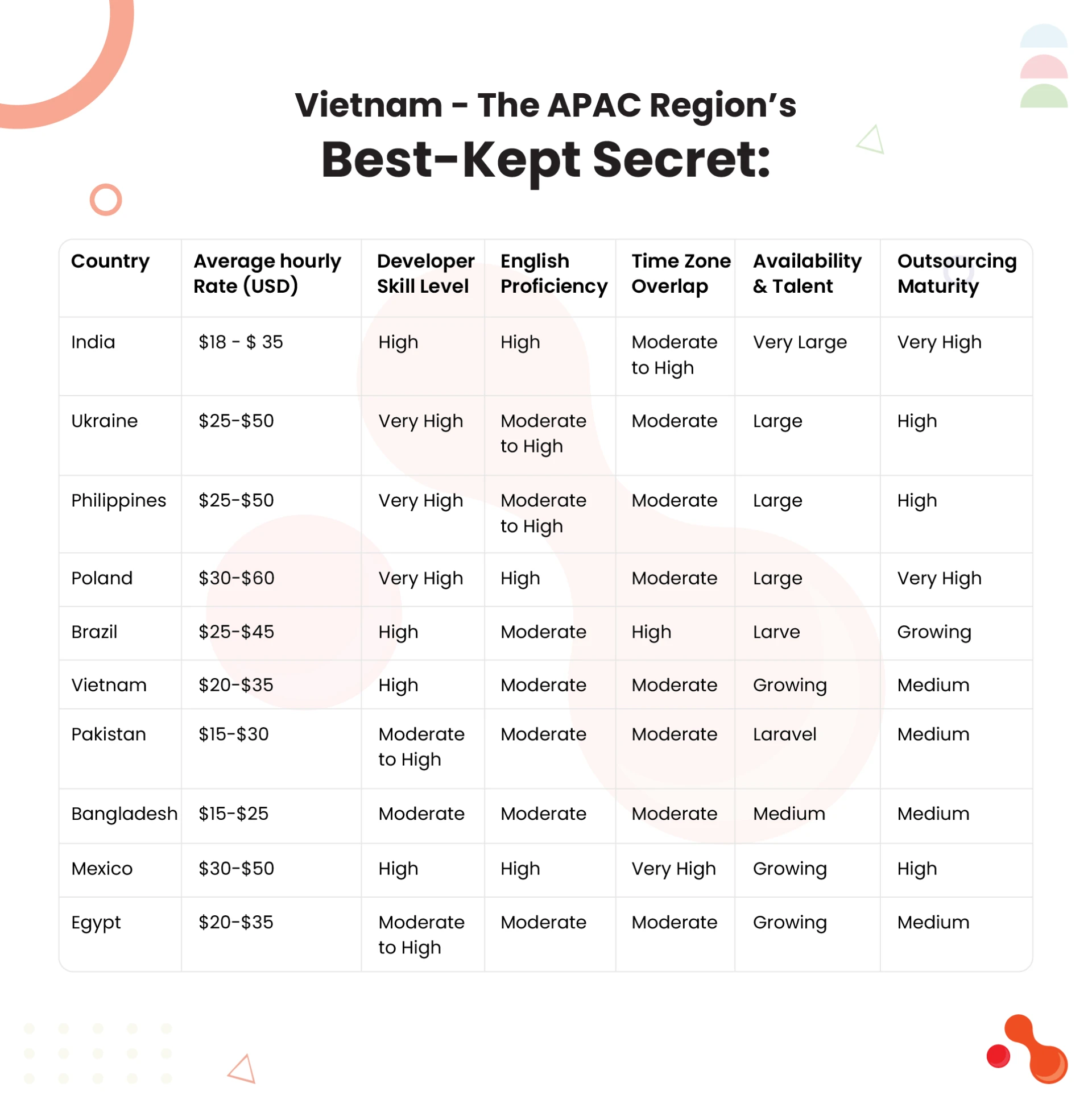 - Why Vietnam: Vietnam offers a fast-growing tech workforce, high developer retention, and competitive rates for Laravel-based application development.