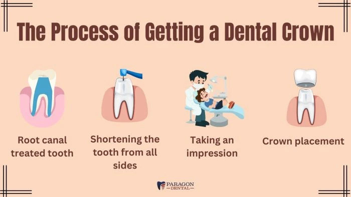 Once the material is decided, your dentist will gently reshape your tooth, removing a small portion from all sides to create space for the crown to fit snugly.