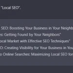 Writing an effective title can be a complicated task because it presents a whole article, blog or webpage. Here, ChatGPT can help you. If you command to write unique titles for "Local SEO", you will get amazing titles that can be used in blogs, articles or title tags.