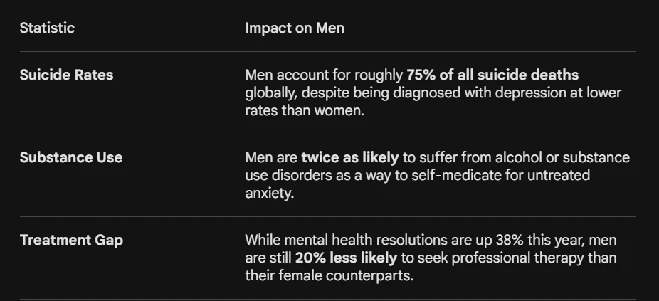 - The Stigma of Vulnerability: A 2025 survey revealed that 40% of men have never spoken to anyone about their mental health. Many report that they fear being perceived as "weak" or becoming a burden to their families.