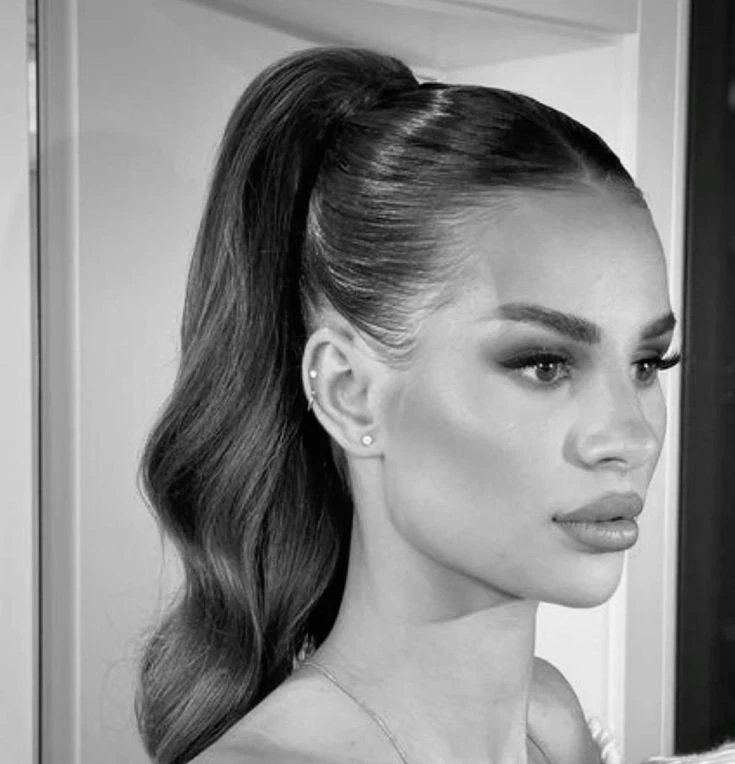 A polished, high ponytail is perfect for a clean, modern aesthetic. Pair it with a long ponytail extension for added drama.