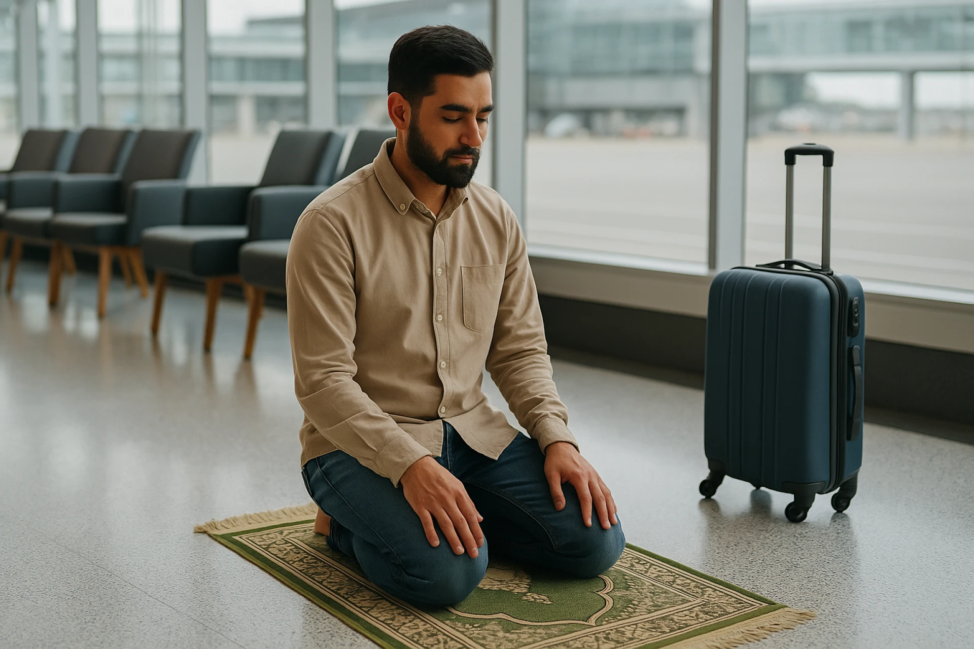 Whether you are stuck in a bustling city, waiting at an airport lounge or exploring a serene natural retreat, remember Salah is never excused for the travellers, it remains a blessed opportunity and can be performed with humility, presence and connection to Allah (SWT). However, travellers can benefit from concessions like Qasr and Jama'.