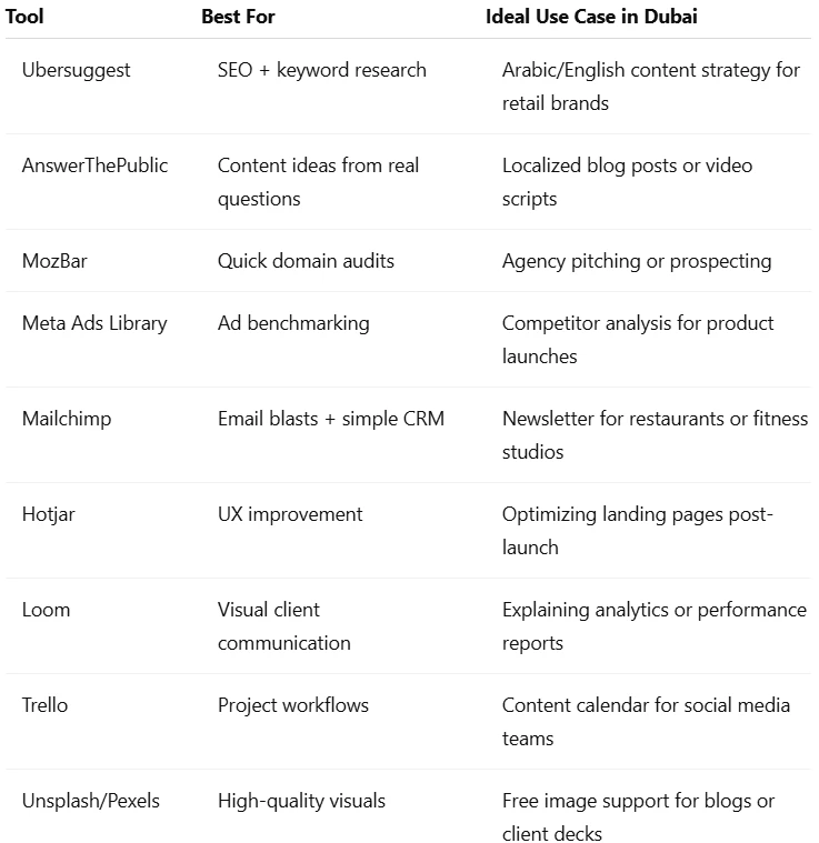 This isn’t a list of tired, obvious suggestions. We’re going deeper, beyond Google Analytics and Canva (although they’re great too). Whether you work at a boutique digital marketing company in Dubai, are part of a scrappy startup, or freelance from your living room in Sharjah, these tools are your new best friends.