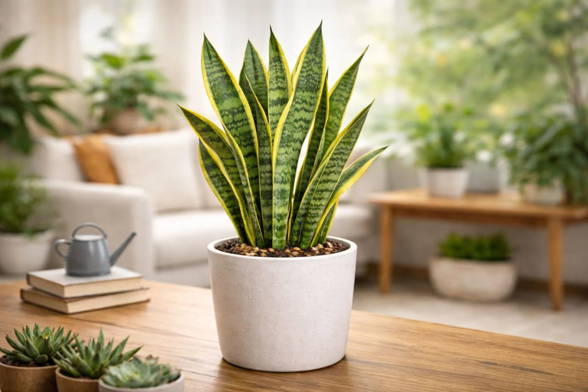 Snake plants are extremely hardy and can tolerate low light, dry air, and missed watering cycles. Their thick leaves store water, allowing them to survive for weeks without attention.