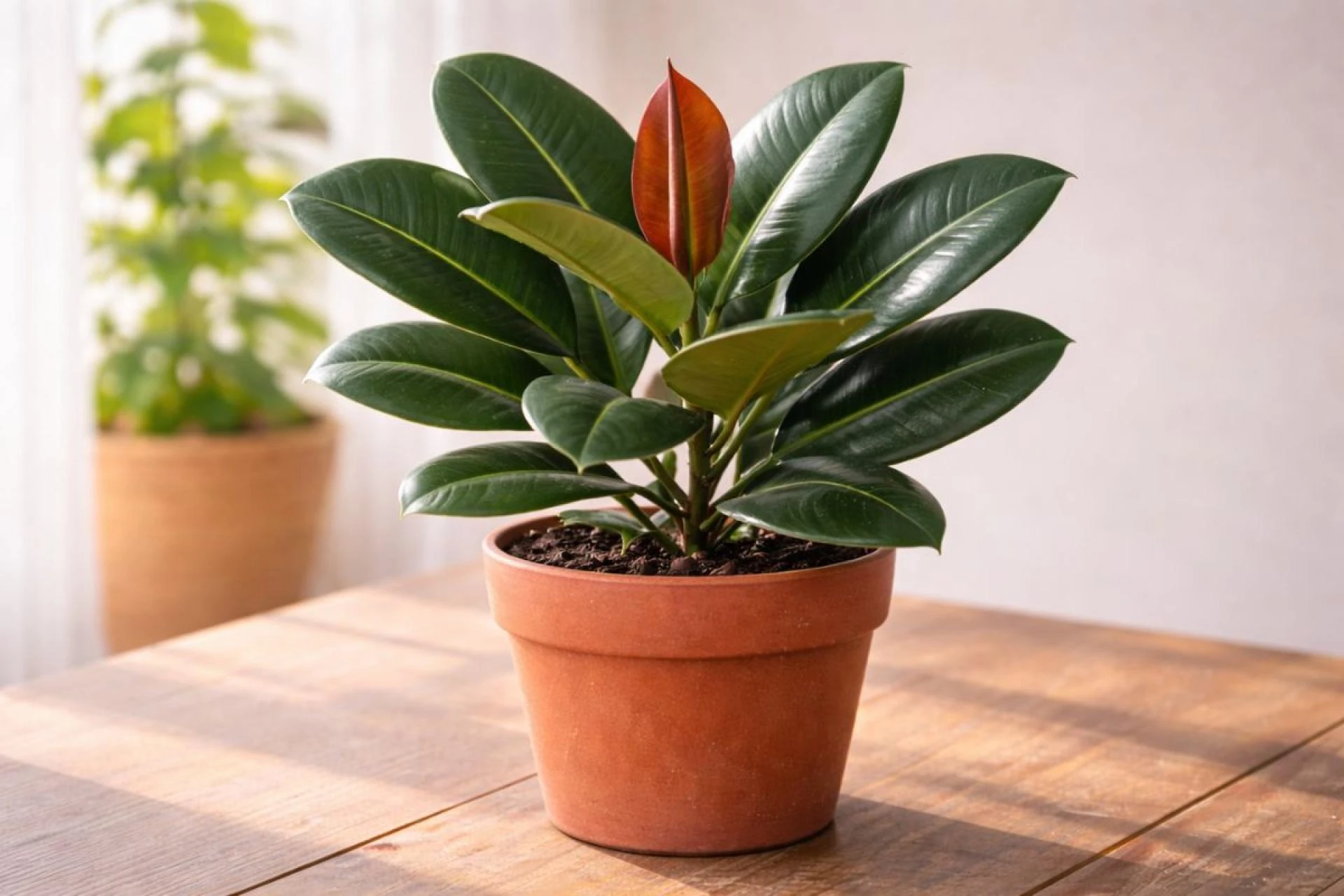 Rubber plants are durable and adaptable to indoor environments. They prefer moderate light but tolerate occasional neglect.