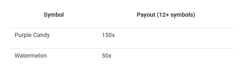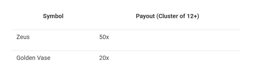 - Paylines: Cluster Pays (8+ symbols)