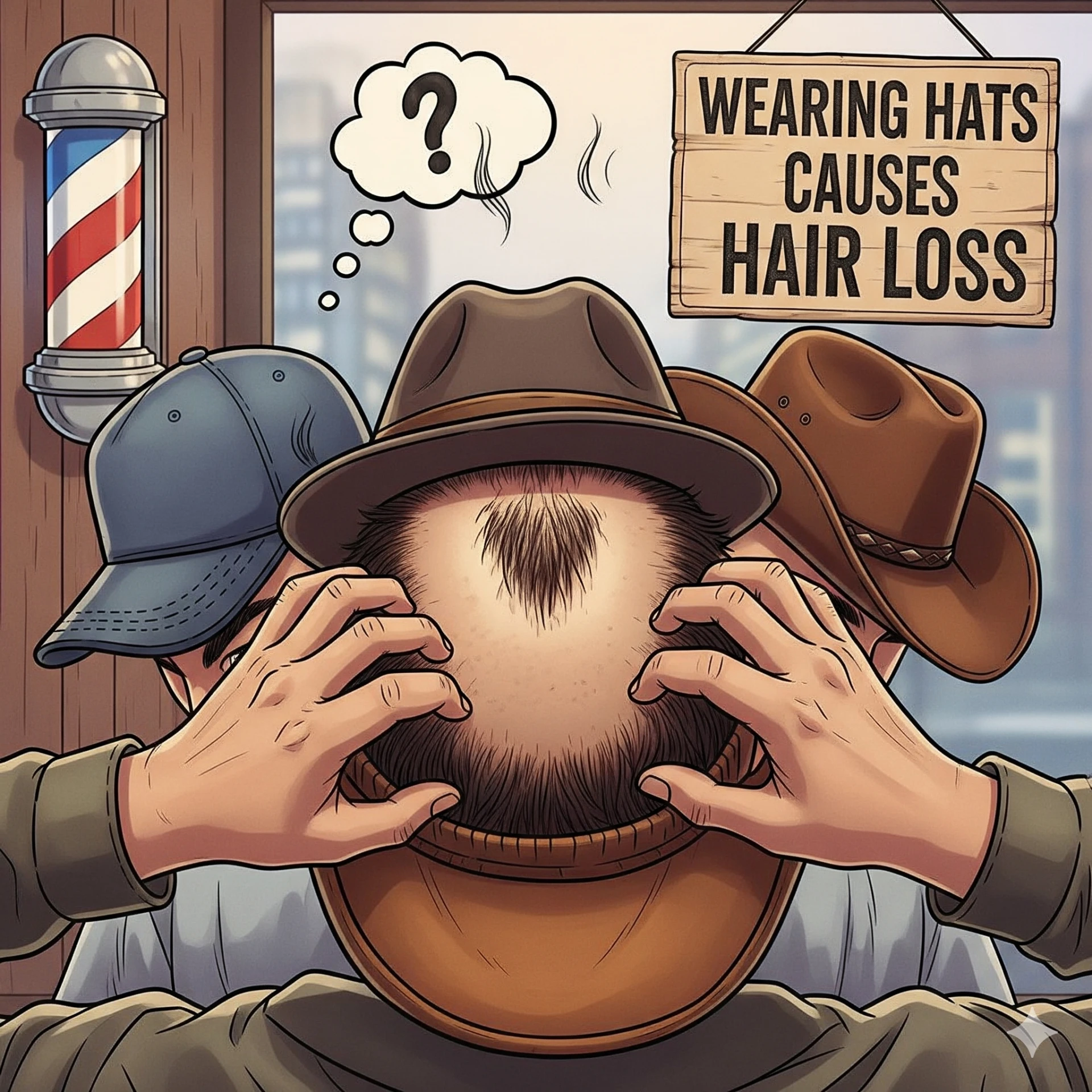 Many people believe that covering their head regularly suffocates the scalp, leading to hair thinning or baldness. In reality, hair follicles get oxygen from the bloodstream, not the air. Wearing hats too tightly might cause some temporary friction, but it won’t lead to permanent hair loss unless there’s extreme tension over time (as seen in conditions like traction alopecia).