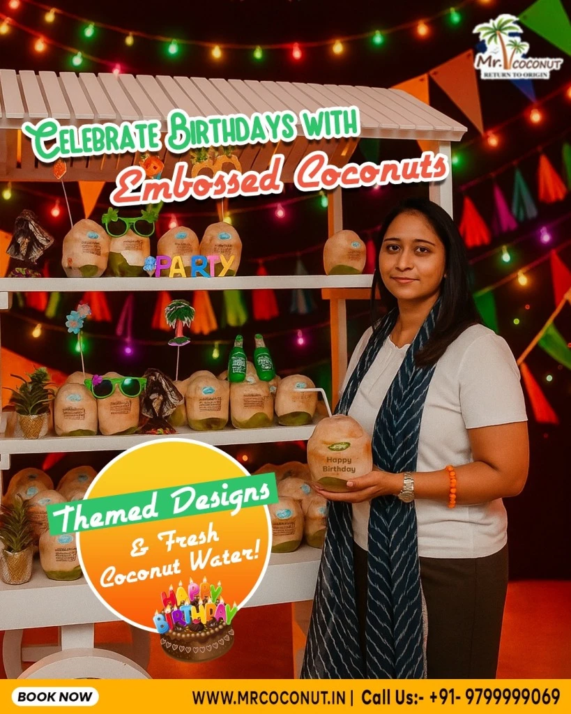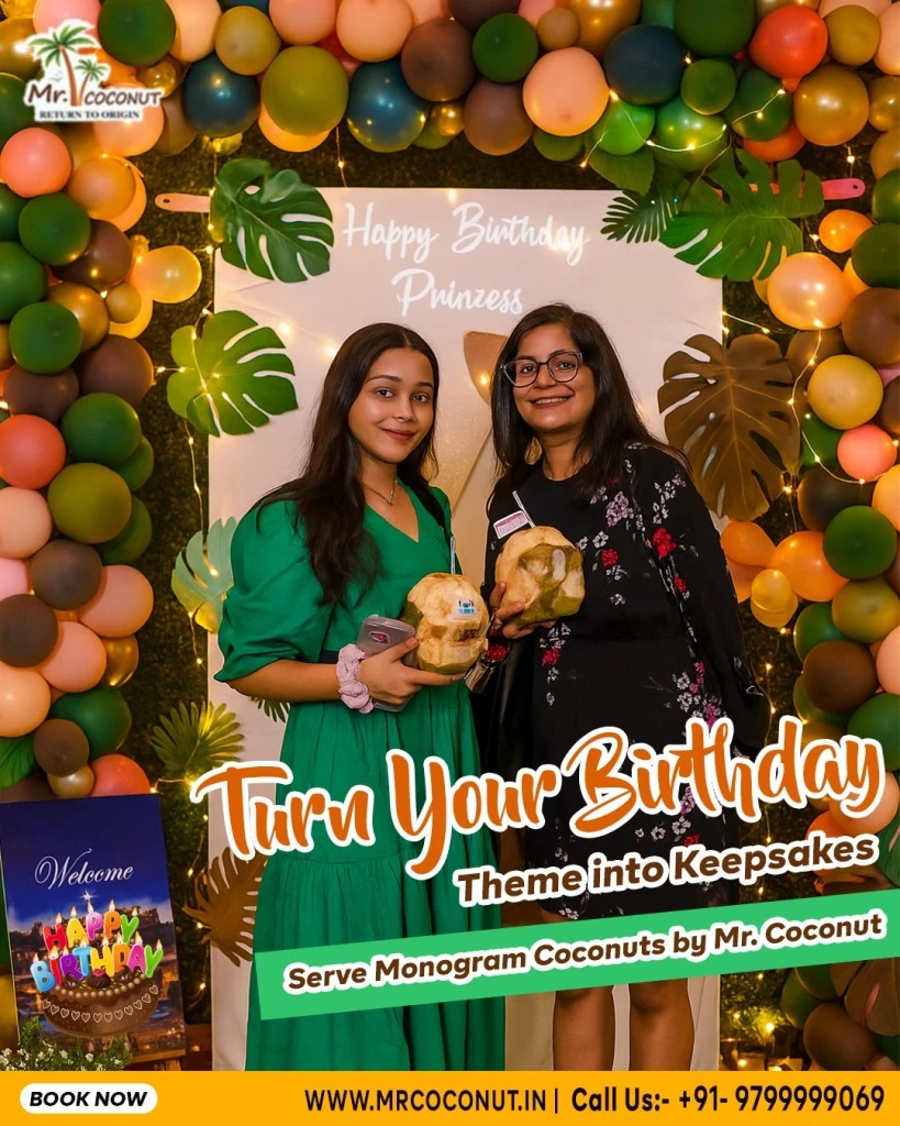 Tropical paradise to Luxe Lounge, birthday parties of 2025 are personalized, health-conscious and memorable. Every celebration is something special at Mr. Coconut, where Customized Coconuts, Personalized Coconuts, and the Cocobar, the combination of design, wellness, and happiness, are the stars. Be it a fancy party in Jaipur, a beach party in Mumbai, or a royal ball in Hyderabad, make your birthday a memorable event with the Best Customized Coconut Brand in India - Mr. Coconut.