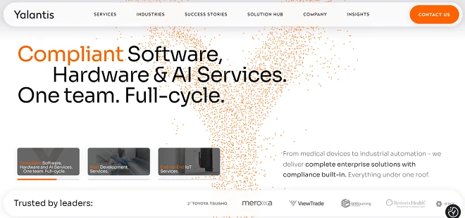Yalantis creates resilient, functional software, specializing in everything from large-scale SaaS platforms to complex AI, IoT, and data-focused products. They combine elite engineering capabilities with state-of-the-art technology to craft flexible, expandable solutions across numerous sectors. Uniquely, Yalantis manages both software and hardware development, facilitating secure and seamless integration of complex systems—such as linking IoT devices within extensive enterprise environments - while maintaining peak operational efficiency.