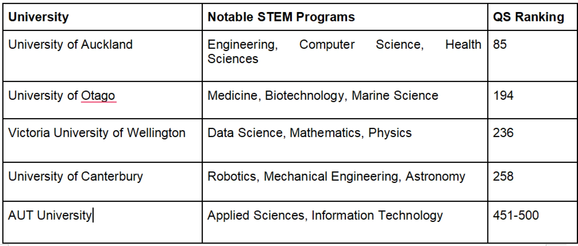 Top STEM programs in New Zealand Universities are provided by: