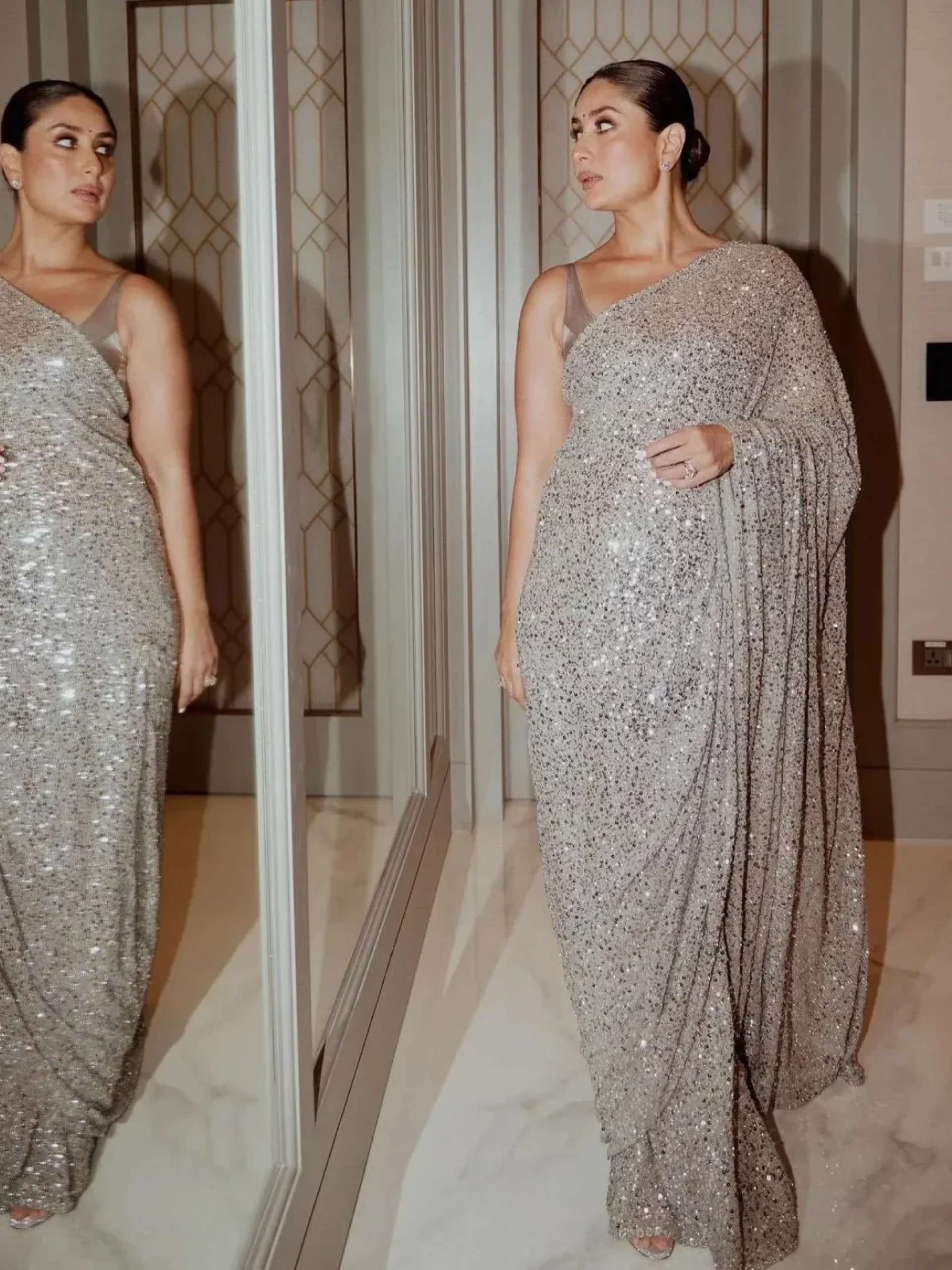 For weddings, deeper shades such as wine, emerald green, royal blue, or maroon create a rich look. Heavy embroidery and sequin work can enhance the celebratory feel. Pairing such sarees with statement jewellery elevates the overall appearance.