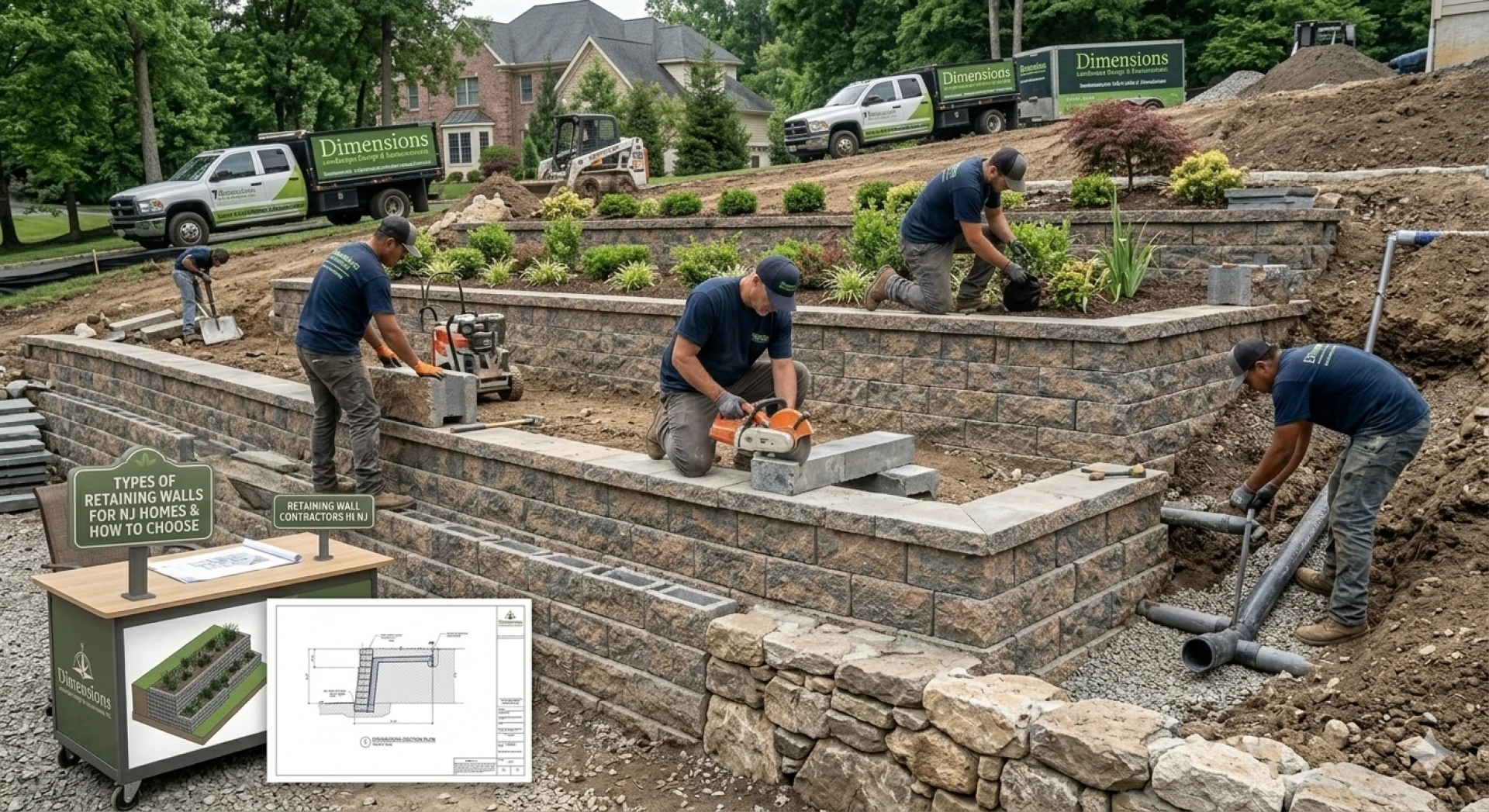 Consulting with professional Retaining Wall Contractors in NJ like Dimensions is the first step. We assess your slope and provide a custom plan that fits your budget and style.