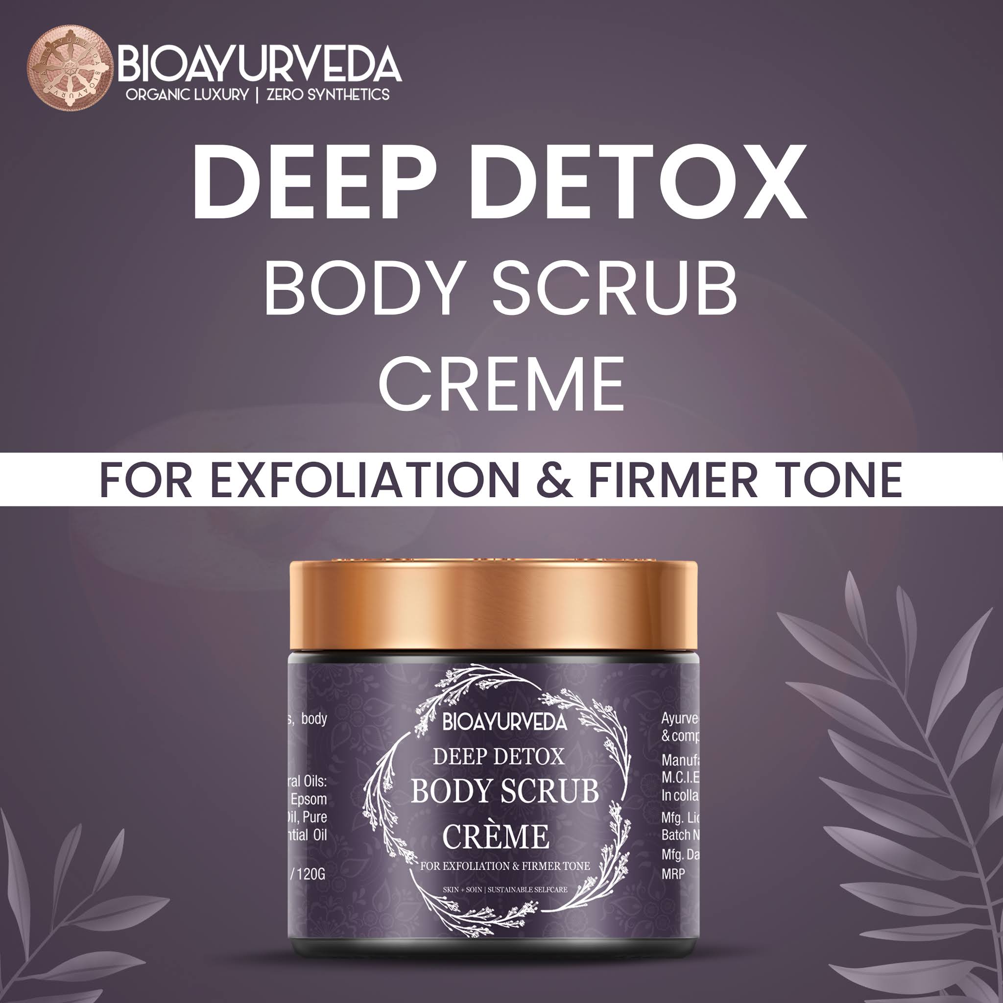 BIOAYURVEDA DEEP DETOX BODY SCRUB CREAM is a unique moderate herbal body scrub cream blend with organic herbs and essential oils that further reducing dead cells and nourishing with wholesome extracts. It is a wonderful Ayurvedic body scrub that promotes cell renewal for vibrant and healthy skin and detoxifying & also fades marks and cellulite.