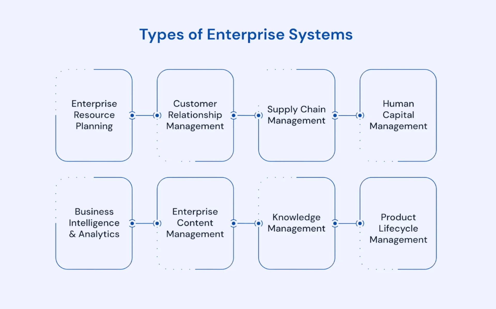 Enterprise applications come in many forms, each designed to serve specific business functions. While the exact list can vary by industry, here are the most common types used by organizations worldwide: