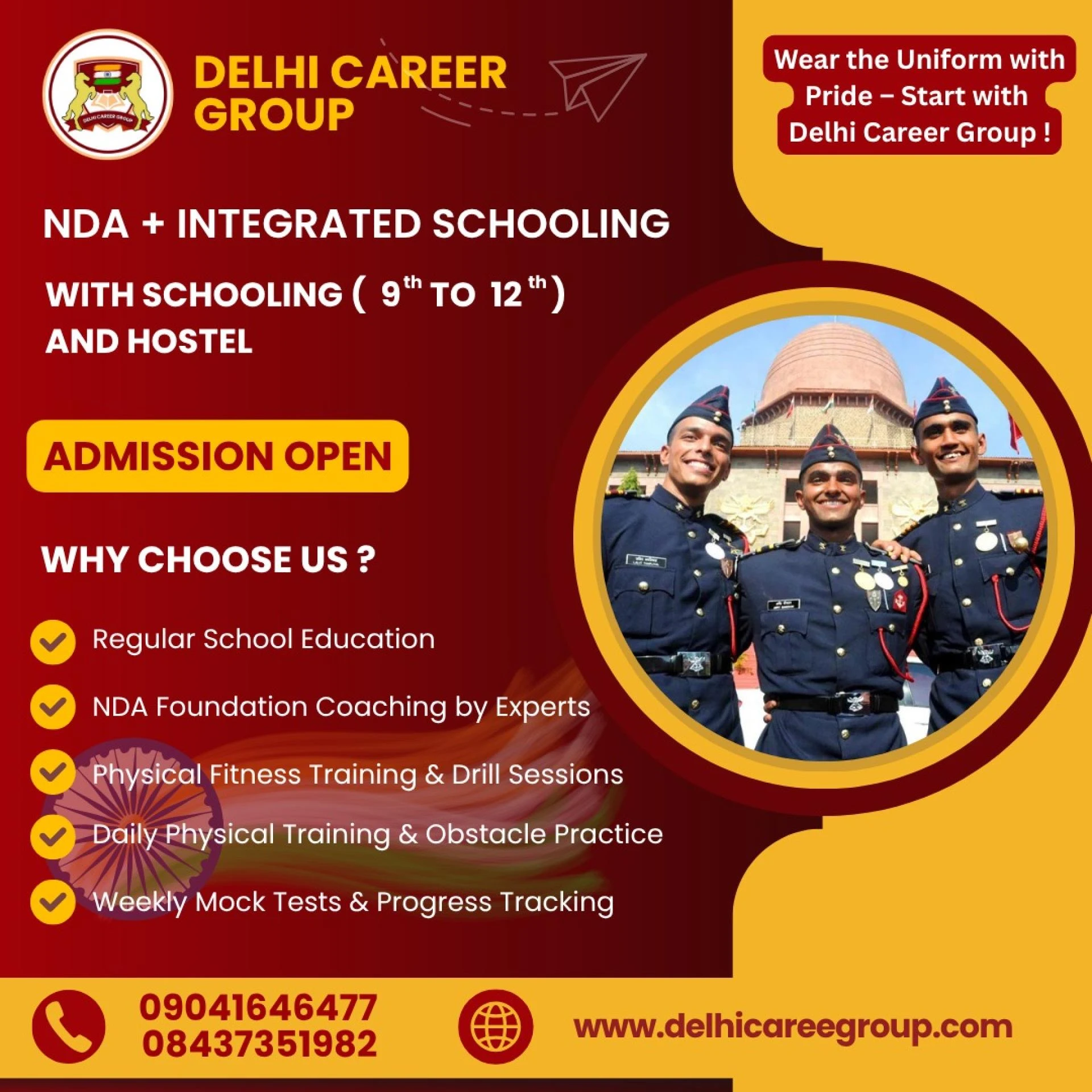 Delhi Career Group specializes in providing comprehensive NDA foundation coaching that integrates schooling with focused NDA exam training, making it easier for students to pursue their dream of joining the Indian Armed Forces with full preparation and confidence.