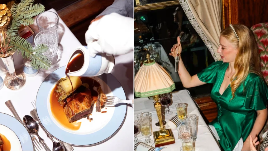 Returning to the Northern Belle, travellers are treated to a five-course dinner with fine wines, entertainment, and candlelit warmth that echoes the splendour of vintage rail glamour.
