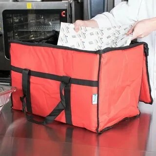 Catering businesses often use extra large insulated food delivery bags or food warmer bags for catering. These carry multiple trays and containers while preserving heat.