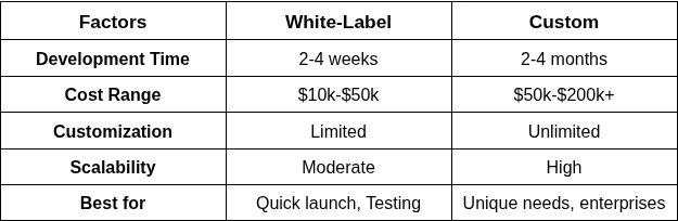 Quick Comparison: White-Label vs Custom Stablecoin Development