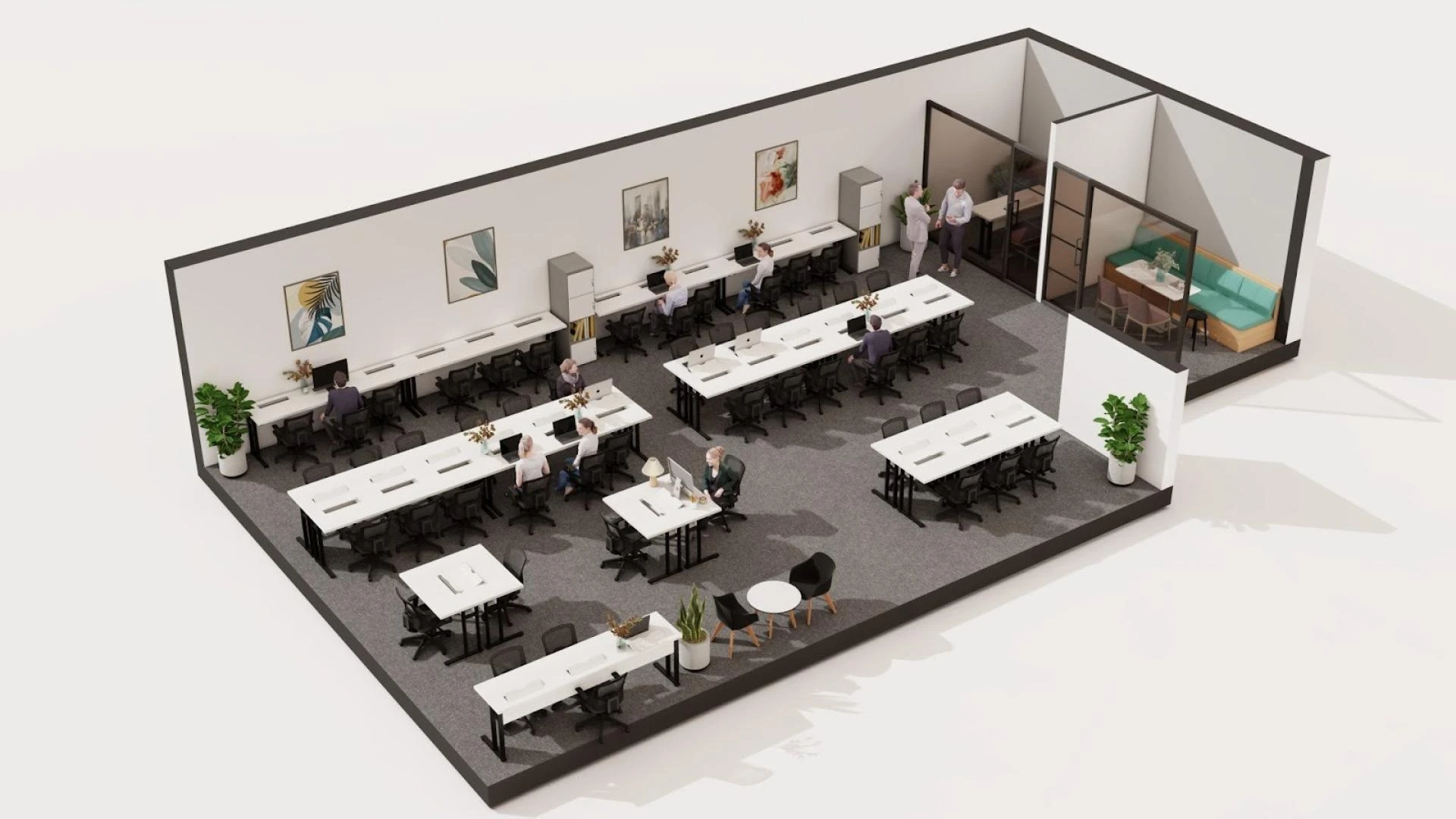 For businesses needing a corporate workspace with 30+ seats, QuickOffice provides a spacious and fully equipped Private Office in Enterprise Solution. Built for productivity and teamwork, it offers fast internet, comfortable workstations, and a smooth workspace designed to fit your team’s needs.