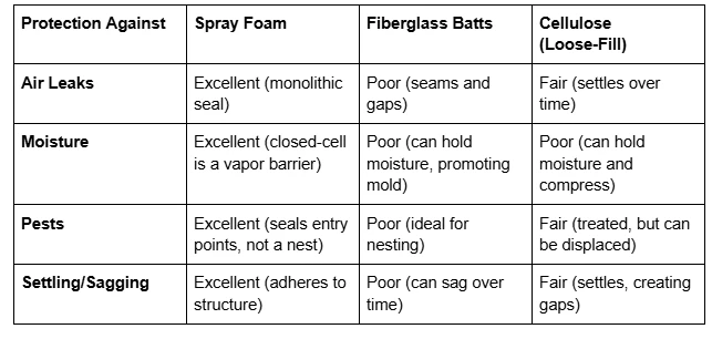 A building's insulation is its first line of defense against the outside world. Spray foam excels at repelling common threats that can damage a home and degrade other types of insulation. Its seamless and solid nature creates a formidable barrier.
