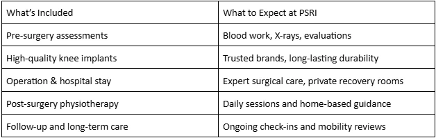 Like any major surgery, knee replacement carries risks such as infection, blood clots, or stiffness. At PSRI, strict protocols and continuous monitoring are in place to minimize these and ensure a smooth recovery.