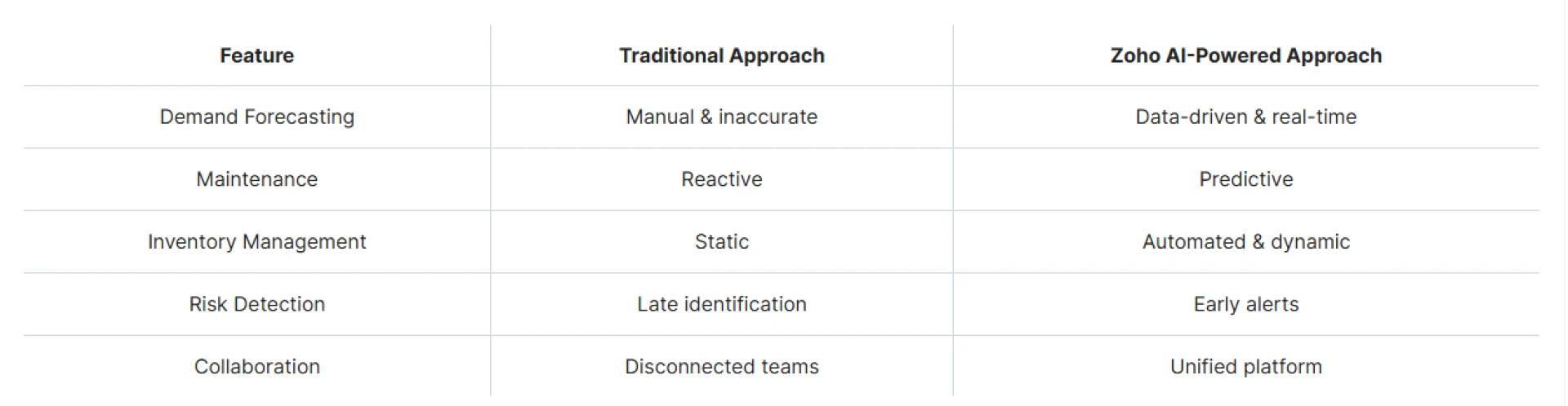 By implementing Zoho AI in manufacturing and supply chain, businesses can expect: