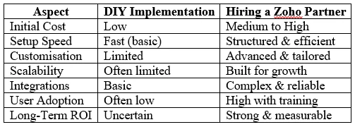 DIY vs Zoho Partner: Side-by-Side Comparison